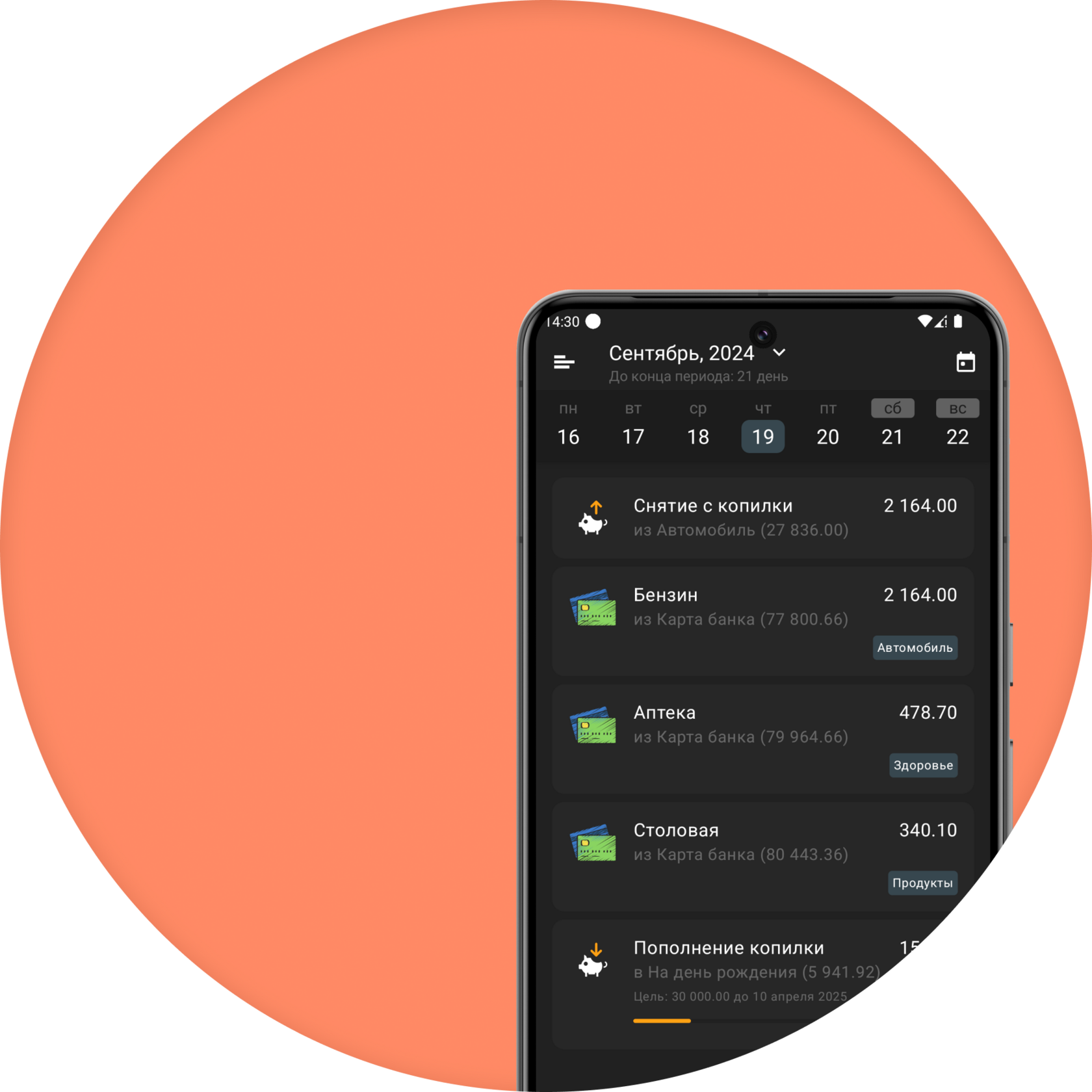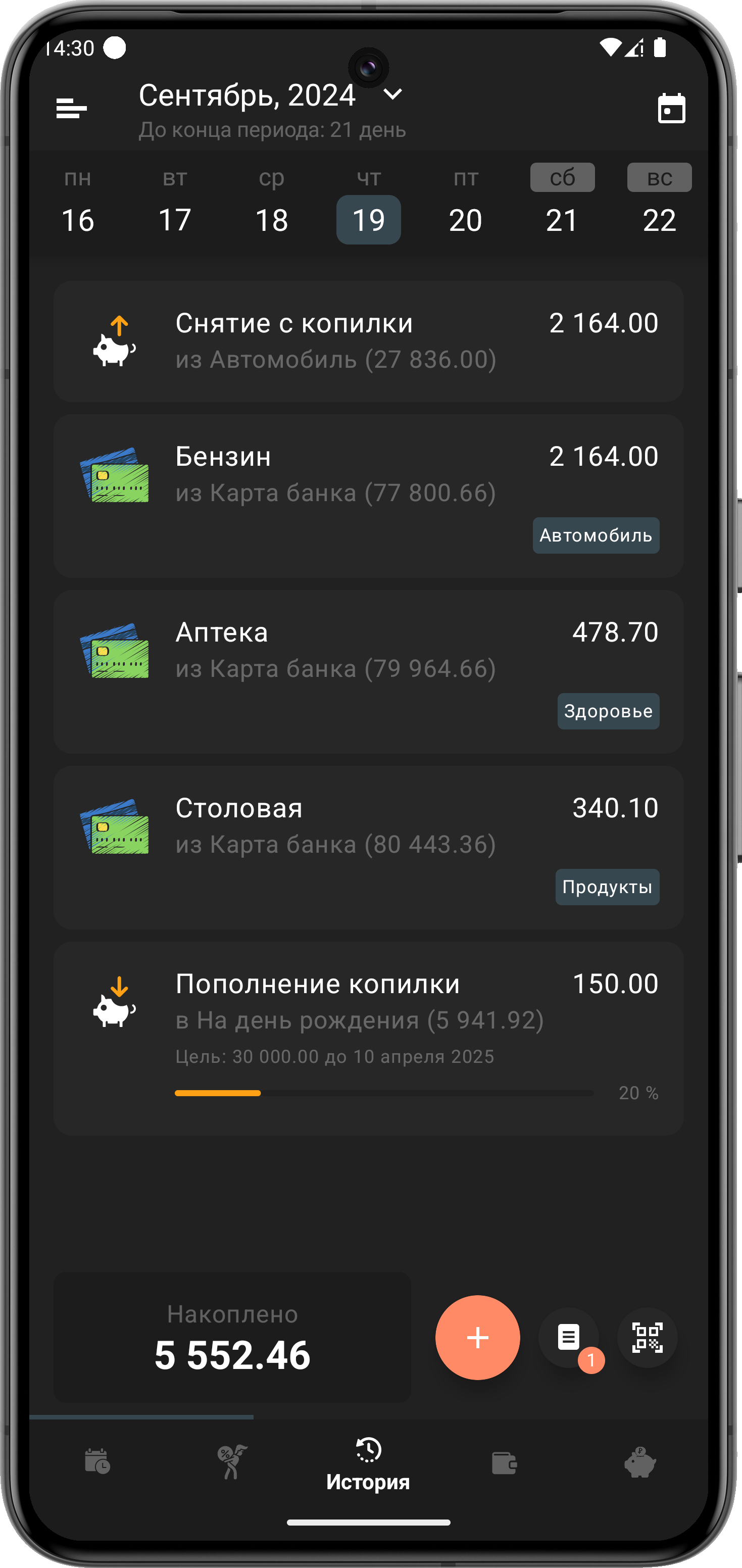 • Ежедневно отслеживаешь экономию и прогресс в накоплениях.