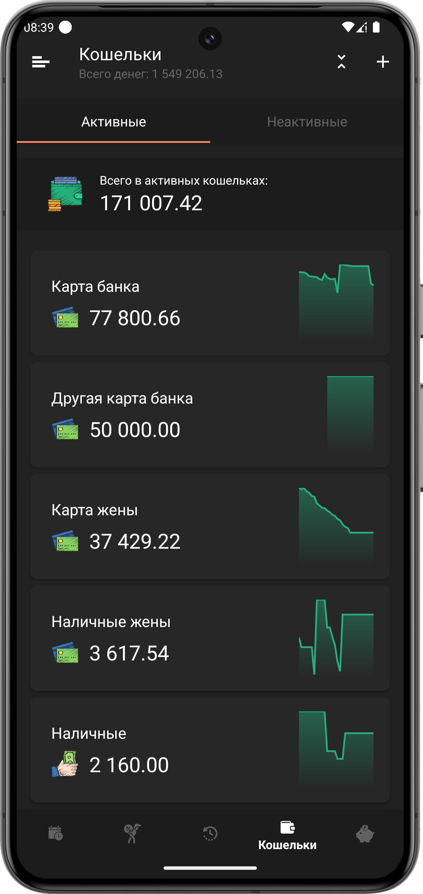 Наличные, карты, вклады, копилки, предстоящие расходы и доходы